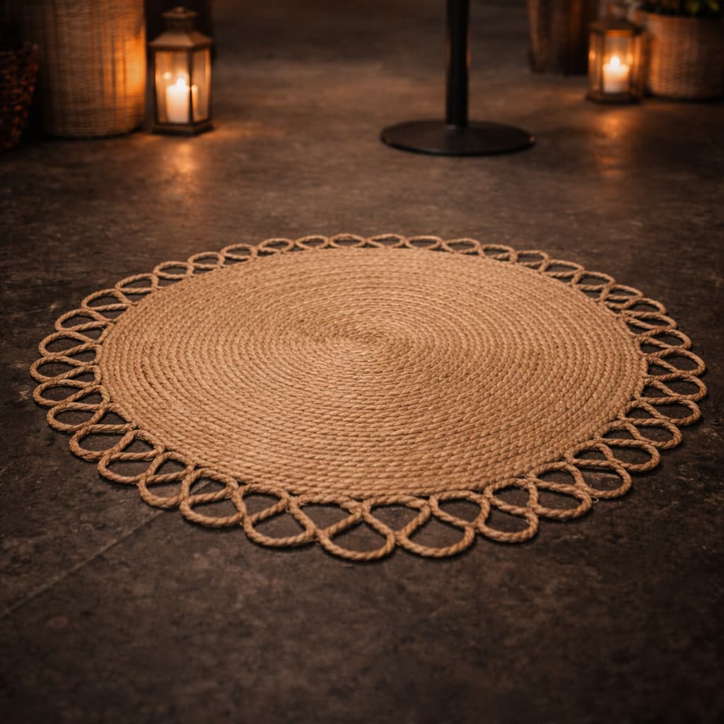 Teppich Tjora eignet sich für Fotopunkte, Staffeleien oder Traubögen. Durch die runde Form lässt er sich leicht kombinieren.