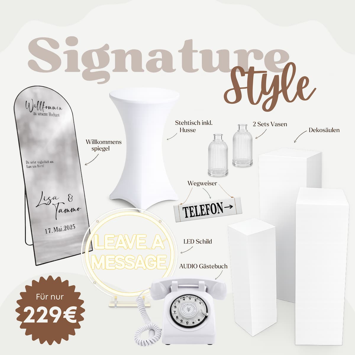 Signature Style steht für einen modernen, eleganten Look mit liebevollen Details und besonderen Akzenten.