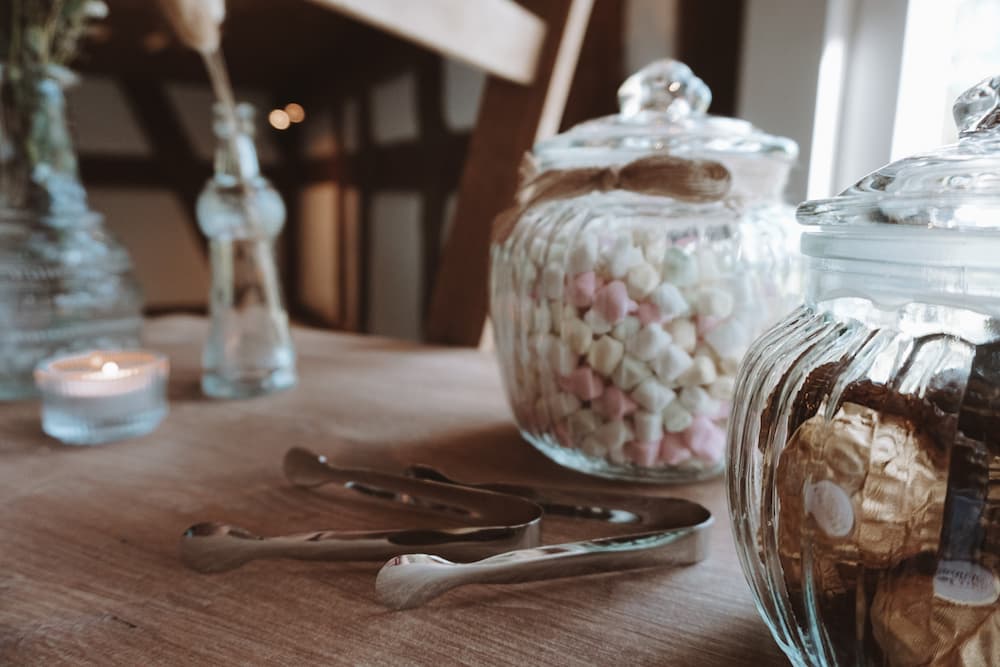 Das Candybar Zubehör-Set bietet alles, was du für eine leckere Naschecke brauchst: unterschiedliche Bonbongläser, Etageren, Teller, Schüsseln und Zangen. Perfekt für Süßigkeiten, Nüsse oder Snacks. Sowohl optisch schön als auch praktisch.