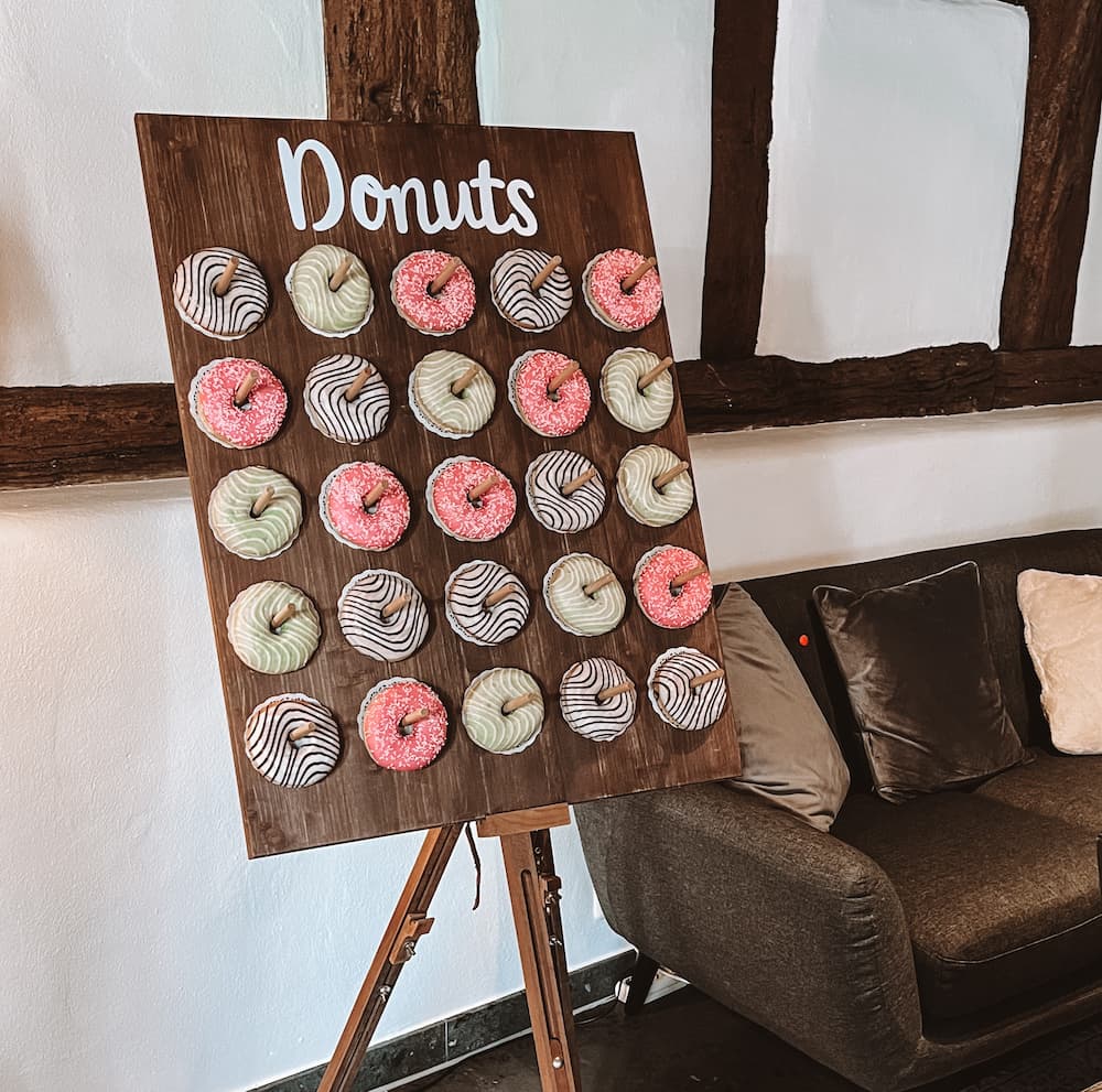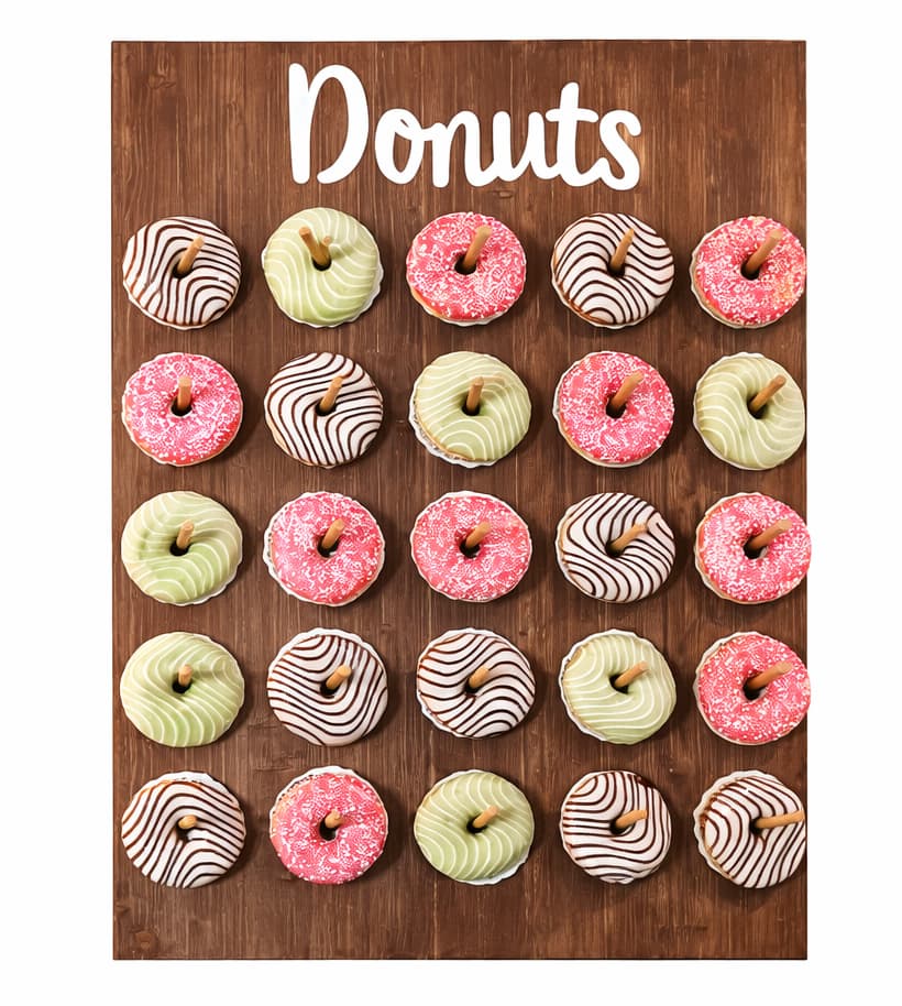 Donutwall Dieter bietet Platz für etwa 50 Donuts und ist ein echter Hingucker auf jeder Candybar oder am Mitternachtssnack. Die schlichte Holzoptik passt zu vielen Stilen und sorgt dafür, dass die Donuts im Mittelpunkt stehen.