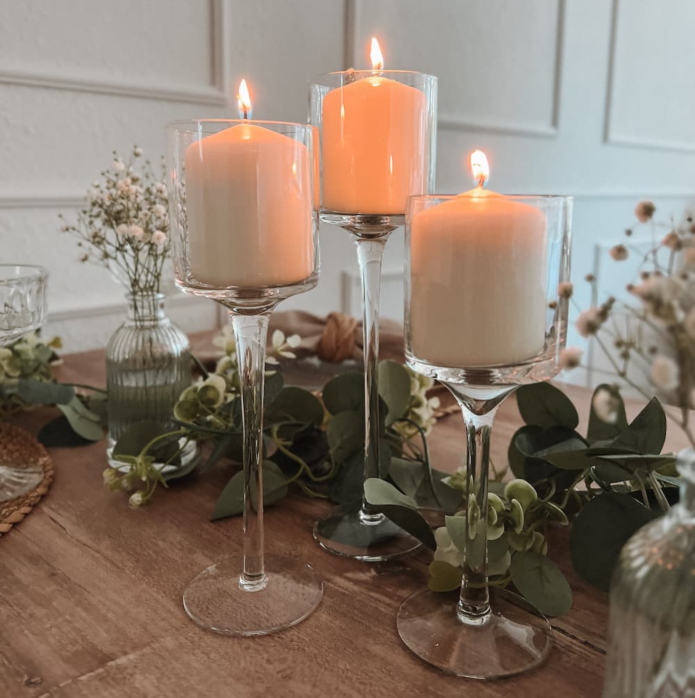 Kerzenständer Kalie besteht aus drei Glasformen, die in der Höhe abgestuft sind. Dadurch entsteht eine ruhige, harmonische Anordnung.