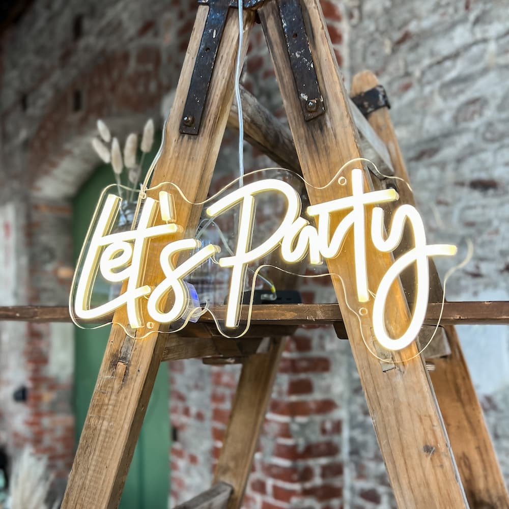LED Schild Let’s Party setzt ein klares Party-Signal und eignet sich für Tanzflächen, Bars oder Fotospots. Durch die kompakte Größe lässt sich der Schriftzug flexibel platzieren und schnell befestigen.