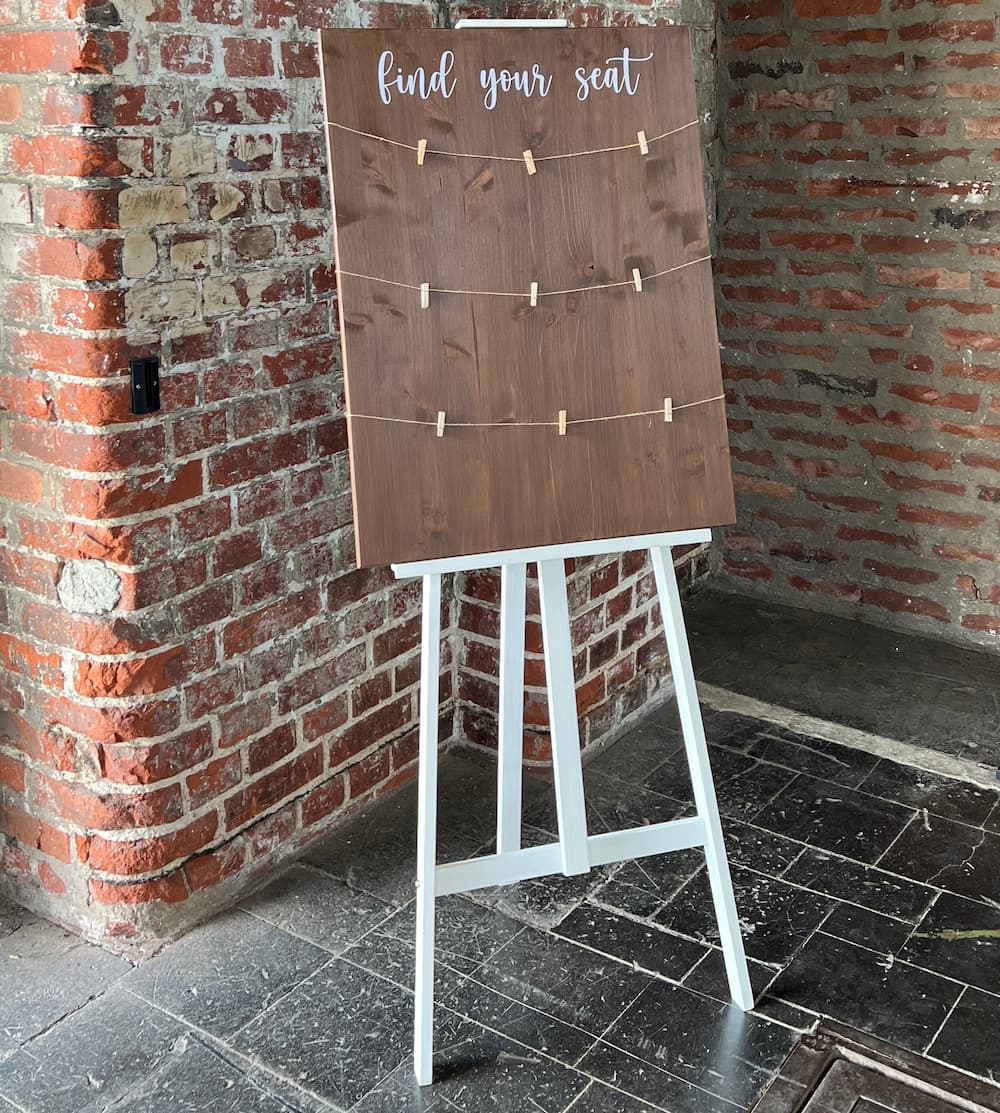 Sitzplan Soren bietet Platz für bis zu 12 Tischkarten und eignet sich ideal für Eingangsbereiche oder Buffetzonen. Die Holzoberfläche lässt die Karten gut wirken und ermöglicht ein schnelles Finden der Plätze.