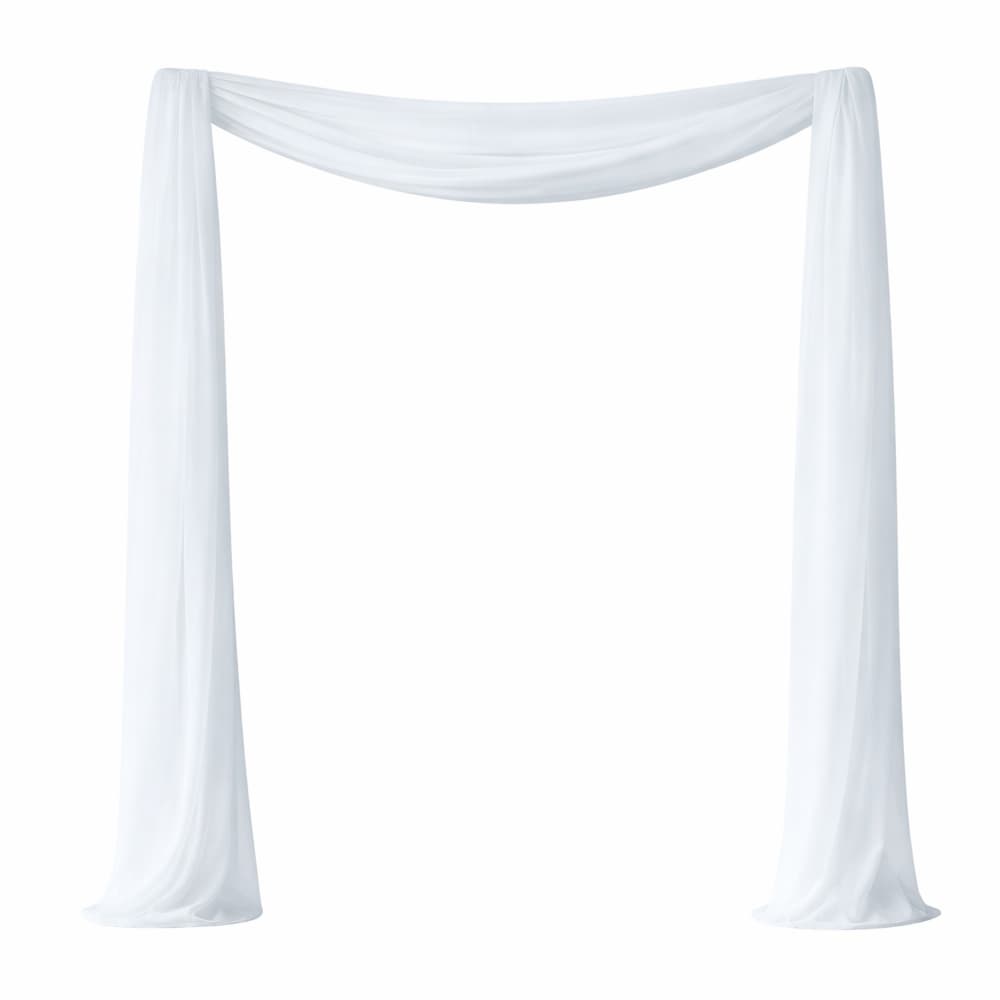 Stoff Simba ist ein weißer, weich fallender Stoffschal, der Traubögen besonders schmückt. Er harmoniert besonders gut mit natürlichen Holz-Bögen und eignet sich auch als Dekostoff an Lichterketten.