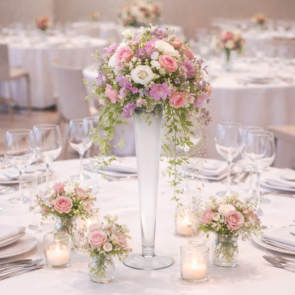 Flutvase Feli sind hohe, schlanke Glasvasen, die durch ihre Höhe markante und moderne Akzente setzen. Sie eignen sich perfekt für Blumengestecke.