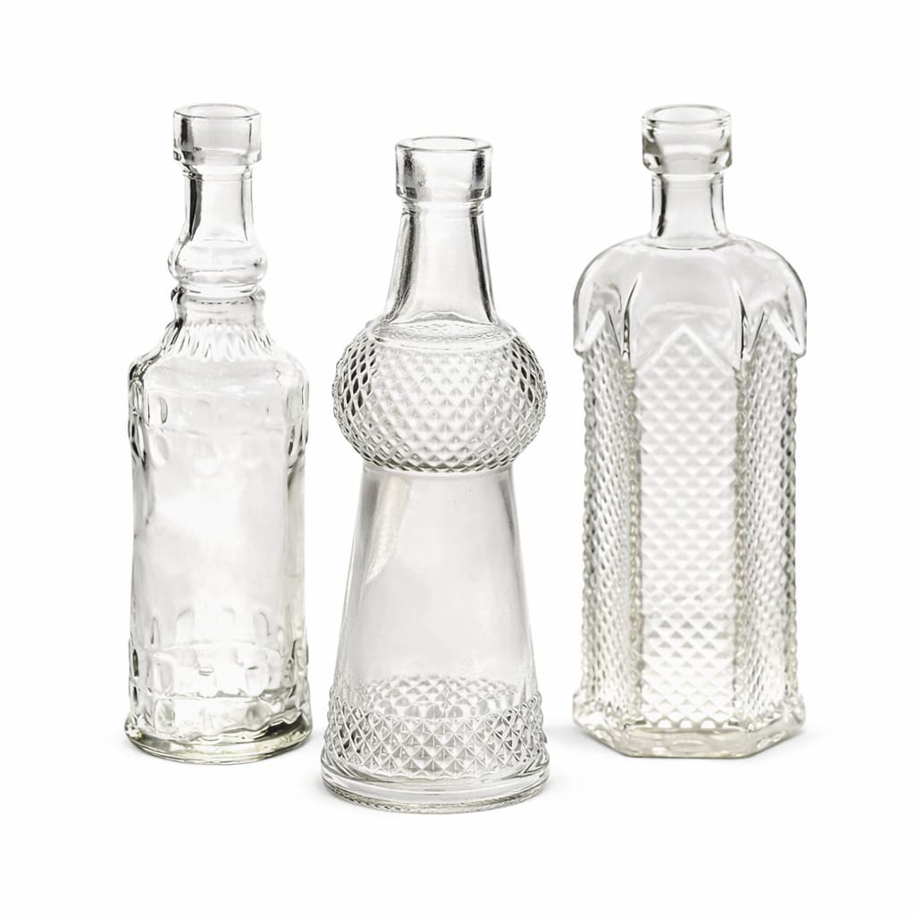 Vase Viete ist ein klassisches 10er-Set aus kleinen, klaren Glasvasen in verschiedenen Formen. Sie eignen sich perfekt für kleine Sträußchen, einzelne Blumenstiele oder Trockenblumen.