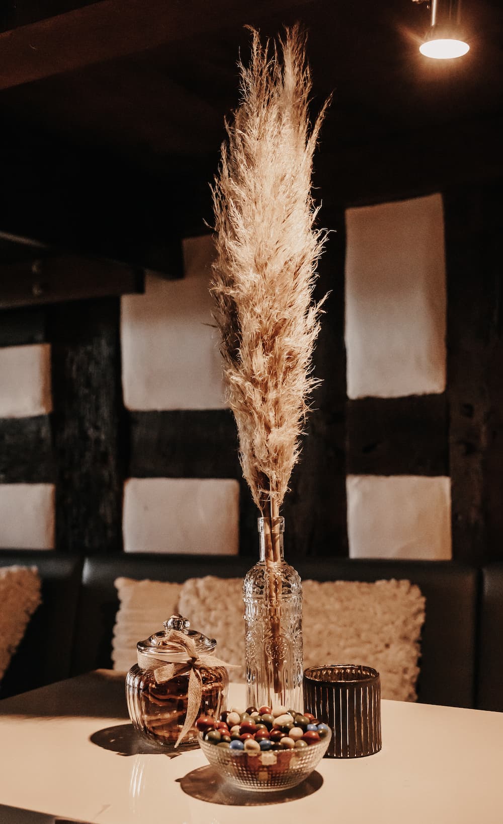 Vase Vler ist ein 10er-Set aus Glasflaschen, ideal für rustikale, natürliche oder minimalistische Tischdekorationen. Die schlanke Form eignet sich perfekt für Pampasgras, Trockenblumen oder einzelne Blumenstiele.