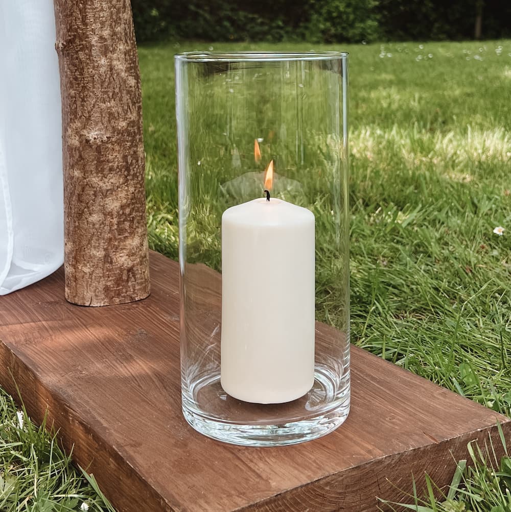 Zylindervase Zoe ist eine mittelgroße Glasvase, ideal für Kerzenarrangements, Blumen oder als Element am Trautisch. Sie lässt sich vielseitig einsetzen – sowohl auf Tischen als auch als Bodendekoration.