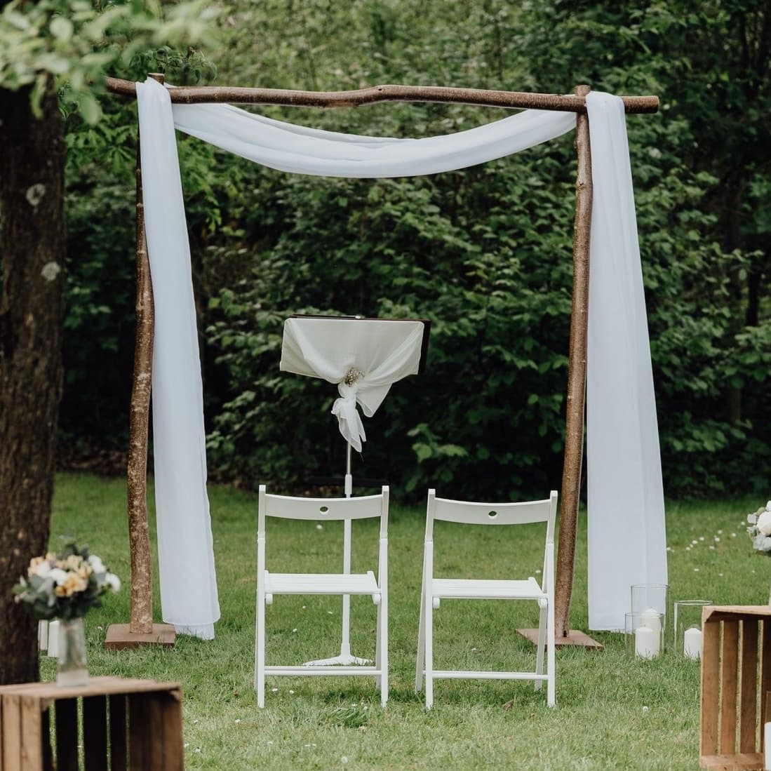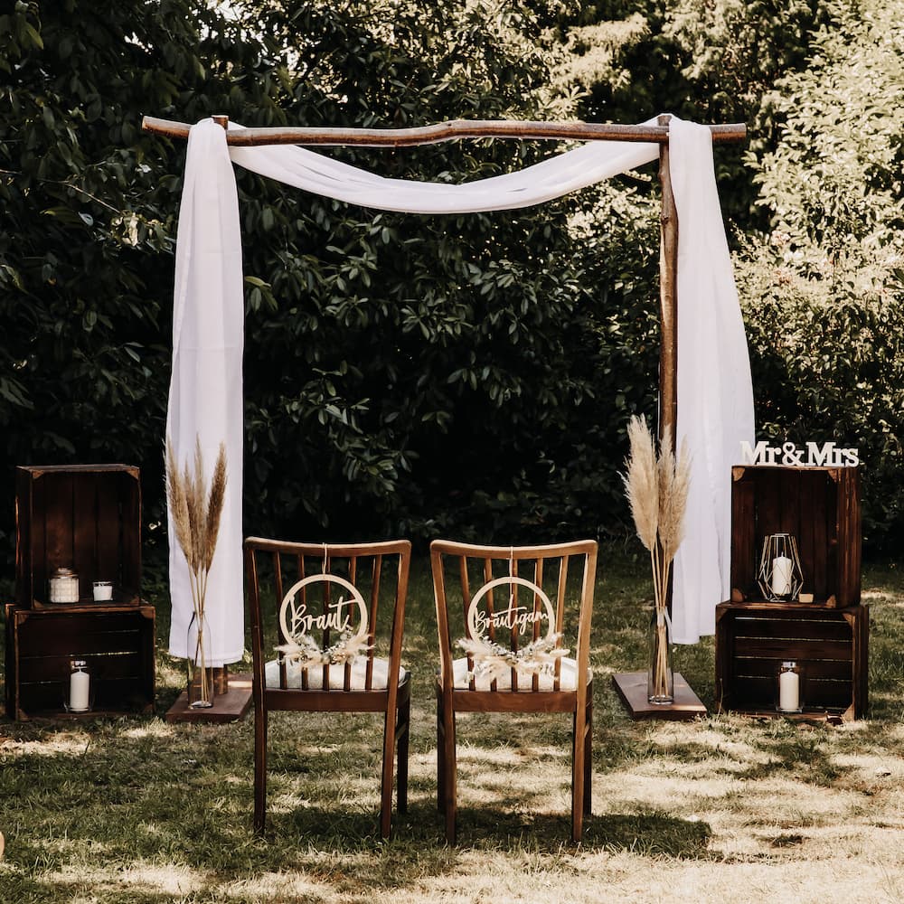 Traubogen Tilli besteht aus massivem Holz und bietet eine klare, natürliche Form für eure freie Trauung oder als Hintergrund für Fotos und den Brautpaartisch. Durch seine Breite eignet er sich für Stoffe, Makramee oder Floristik. Tilli steht stabil auf jedem Untergrund und kann sowohl drinnen als auch draußen eingesetzt werden.